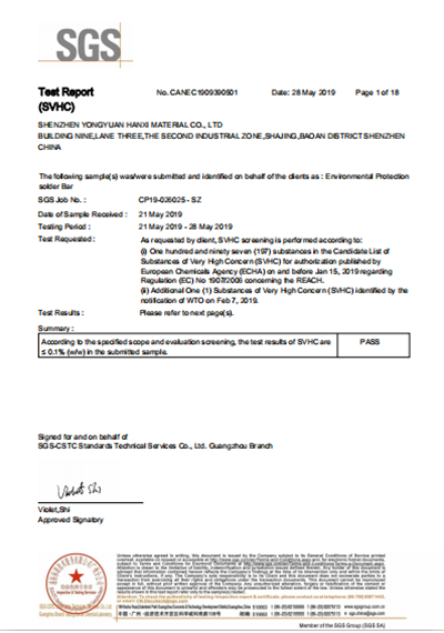 公司发展基础:公司现具有无铅焊料生产系统及锡焊料生产系统,两大独立的生产体系,并拥有先进的焊料生产实验设施及原料,产品检验设备。更拥有一批高素质,经验丰富的科学技术工作者,确保产品高质量要求及向上的产品技术要求。科学的管理制度,促使产品获得SGS国际检测机构品质证书,更在无铅焊料系列中,研制实用型的焊料专利品牌。使永源牌产品广泛应用于电子、通讯、电器、仪器、仪表的焊接技术工程。